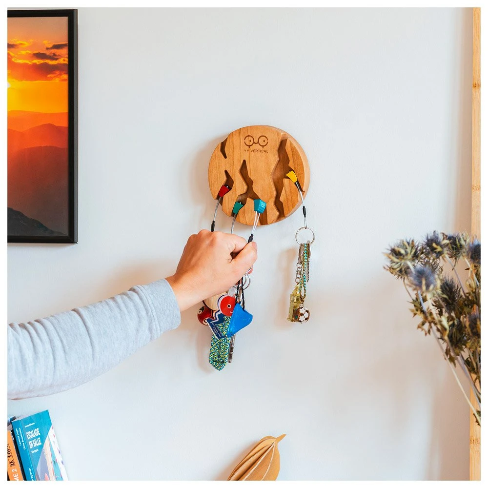 Específicamente creado para los fanáticos de la escalada, el Key Holder Circle es un llavero original diseñado por la marca YY Vertical. Minimalista, se inspira en las grietas que se encuentran en las paredes. La parte de madera se puede fijar a la pared mediante un adhesivo o un tornillo.