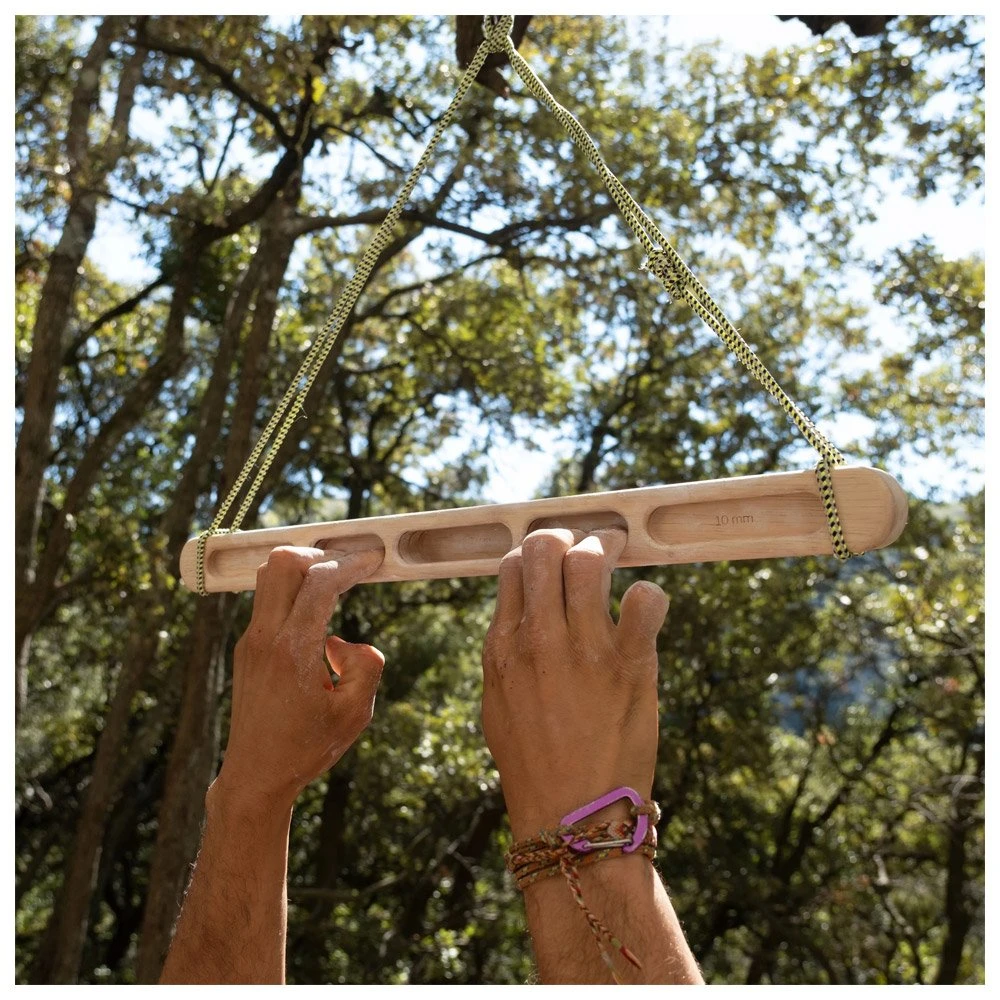 La Baguette de YY de Vertical es una tabla de entrenamiento de escalada de madera de unos 50 cm. de largo que te permitirá calentar y entrenar.