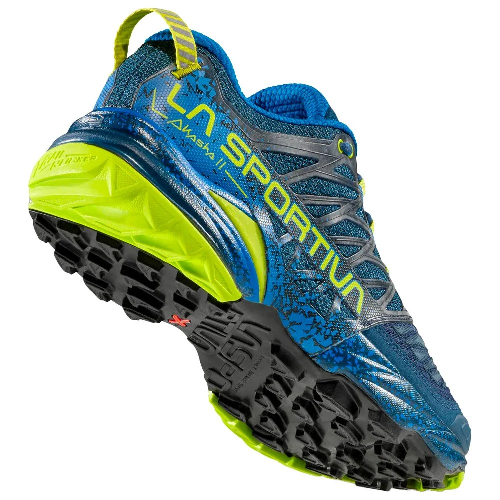 Las Akasha II son unas zapatillas de trail que ofrecen muy buen agarre y una excelente amortiguación. La suela FriXion bidensidad ofrece un muy buen equilibrio entre durabilidad y agarre. Los refuerzos de densidad estratégicamente colocados favorecen el apoyo natural del pie y su estabilidad. Este modelo es ideal para complexiones fuertes o senderos muy largos gracias a la amortiguación gruesa pero bastante firme. Un protector contra piedras está presente en la parte delantera para proteger los dedos de los pies y mejorar la robustez.