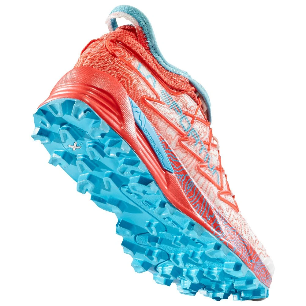 La versión femenina de la Mutant de La Sportiva hace honor a su nombre a la perfección, ya que se trata de una zapatilla de trail posicionada entre los modelos de rendimiento y los de competición. Diseñada con un perfil de suela agresivo, ofrece un agarre óptimo y será ideal para distancias medias, terrenos abruptos y embarrados. Su drop de 10 mm y su excepcional amortiguación proporcionan una protección eficaz durante las agresiones menos directas del pie, incluso en el talón. La marca apuesta por un enfoque eco-responsable utilizando más materiales reciclados en su fabricación. Por último, el innovador sistema SpyralTongue evita la entrada de piedras y suciedad en el interior de la zapatilla.