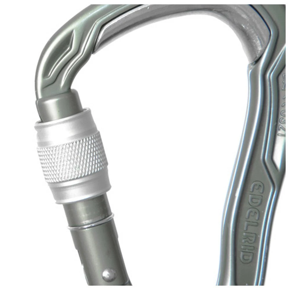 El mosquetón de rosca a prueba de balas HMS de Elderid es un modelo robusto diseñado para el aseguramiento en semicabina. Cuenta con un inserto de acero en la parte superior que evita el desgaste prematuro y la formación de bordes afilados.