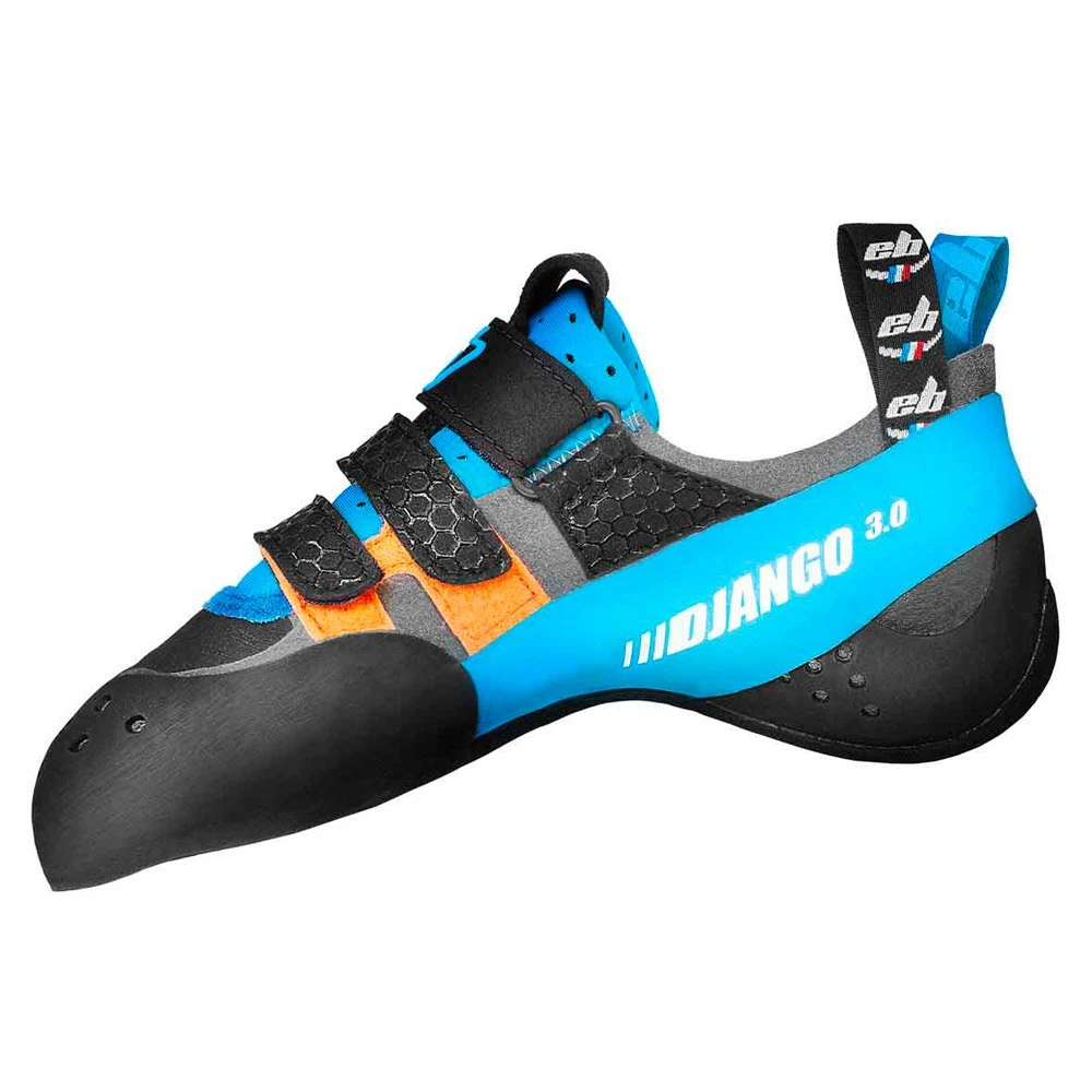 El EB Django 3.0 es un zapato de escalada diseñado para escaladores experimentados, con una forma muy asimétrica, un agarre bien marcado y rigidez que proporcionan la máxima sensación para cargar las presas más pequeñas. La suela de goma Daytona de 5 mm proporciona todo el agarre que necesitas. La incomodidad creada por la restricción de la forma del forro se compensa ligeramente con la parte superior de microfibra elástica, que se amolda a la forma de tus pies, a la vez que proporciona una mayor precisión. Un zapato ideal para la ruta, en particular para la escalada deportiva en crestas.