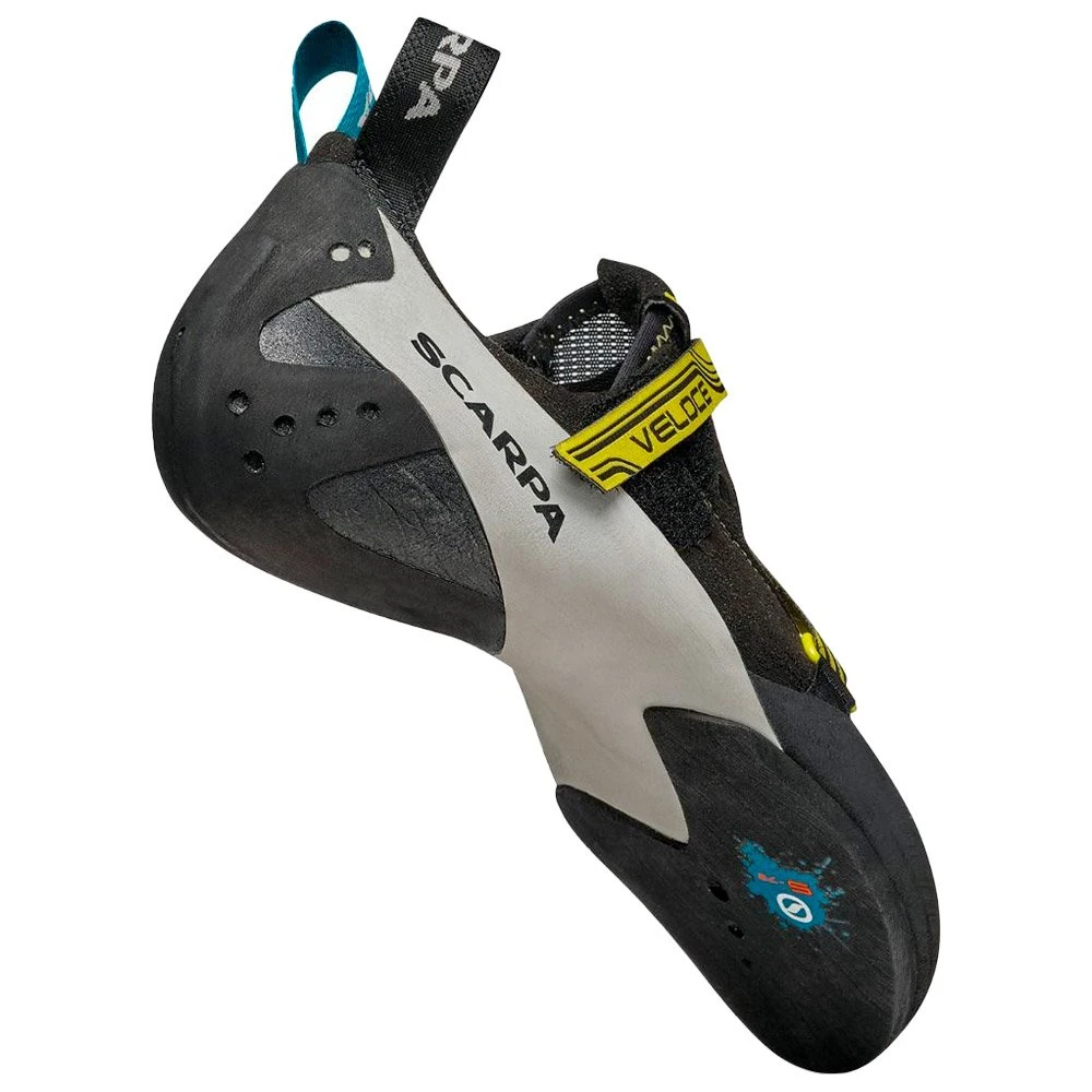 La Scarpa Veloce es una zapatilla desarrollada específicamente para escalada en interior y beneficiándose de un trabajado confort que será particularmente apreciable para escaladores principiantes a intermedios y para largas sesiones de boulder en el gimnasio. La asimetría es ligera y la garra moderadamente pronunciada. Hay mucho espacio para los dedos y el sistema PAF reduce la presión en los dedos. El contrafuerte de la puntera hace posible el enganche, la suela exterior S-72 proporciona un buen agarre sin dejar de ser bien duradera.
