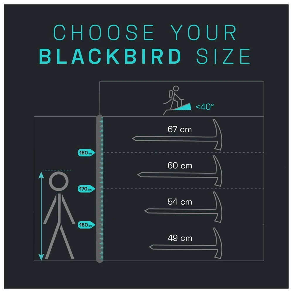 Ideal para viajes por glaciares y alpinismo clásico, el piolet Blue Ice Blackbird es un modelo muy versátil con una cabeza ergonómica de acero cromado que ofrece ligereza y eficiencia. Este último penetra muy fácilmente en el hielo. La zona de agarre bitexturizado proporciona un agarre excelente y el mango de aluminio es resistente y ligero.